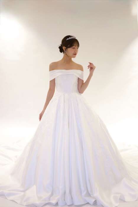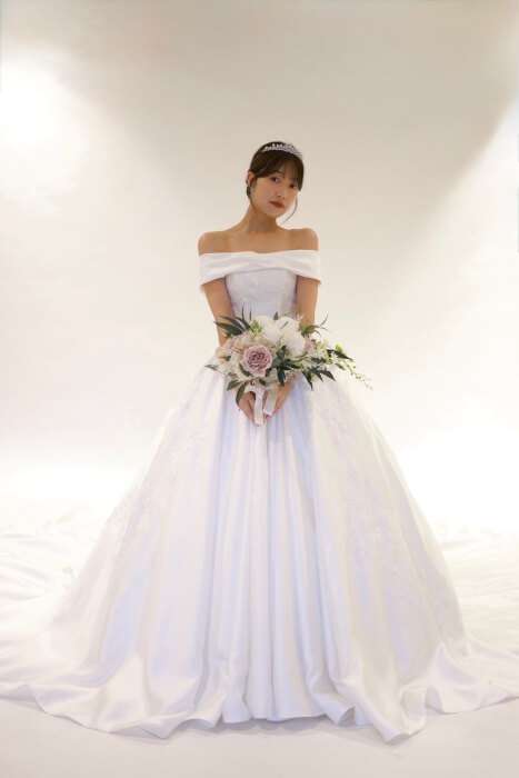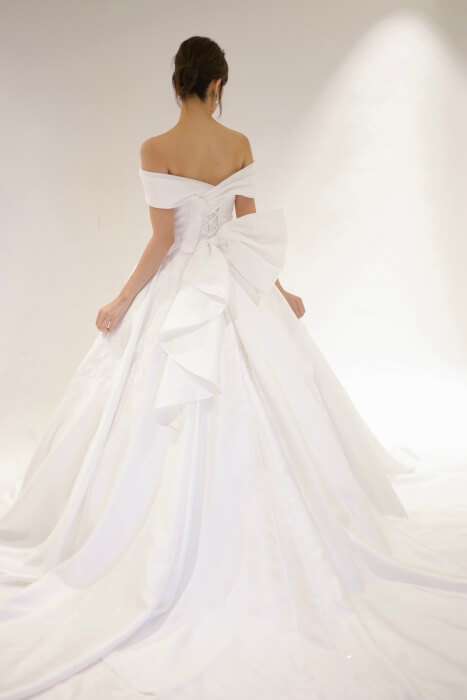 ボリュームはたっぷり腰元から広がるプリンセスラインのデザインで