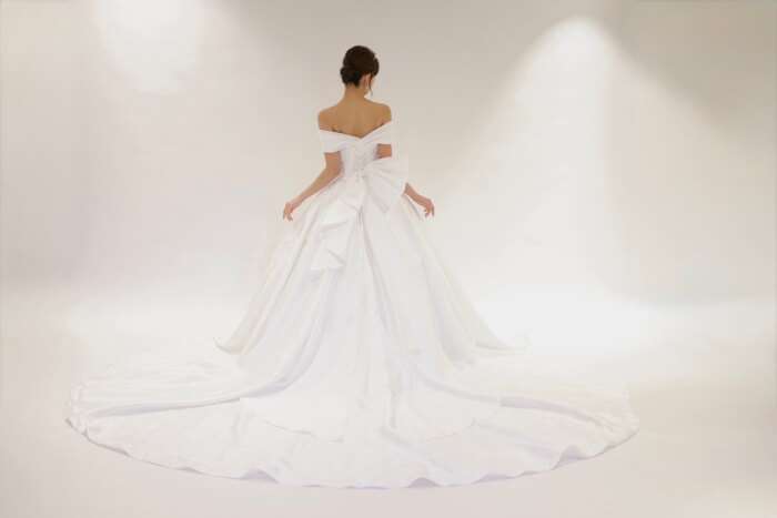 スカートの後ろはロングトレーンなので豪華な1着です!