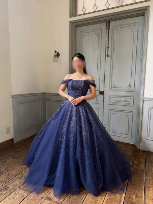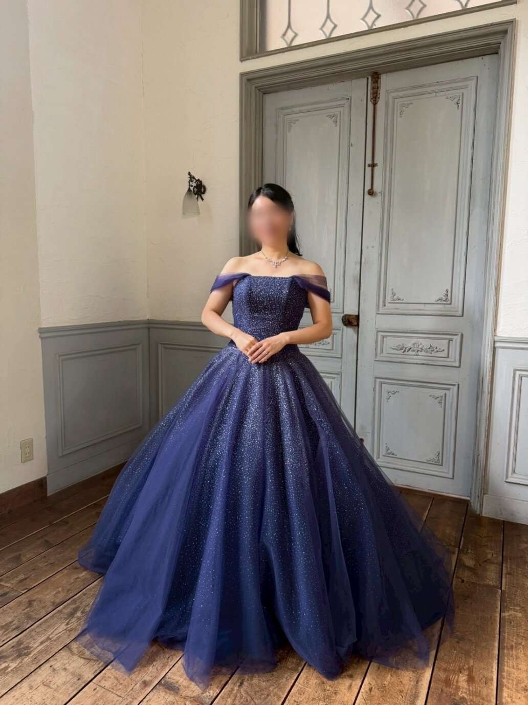 アンティークな空間にネイビーのドレスが本当によく映えていて、とても素敵です💙