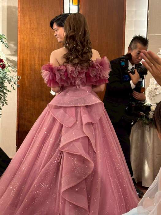初めてのご来店いただいた際からピンクのドレスがとてもお似合いだなと思っておりましたが当日のお写真をみて改めてご新婦様にはピンクのドレスで正解だったなと思いました💗ドレスも気に入っていただけてとっても嬉しいです!!