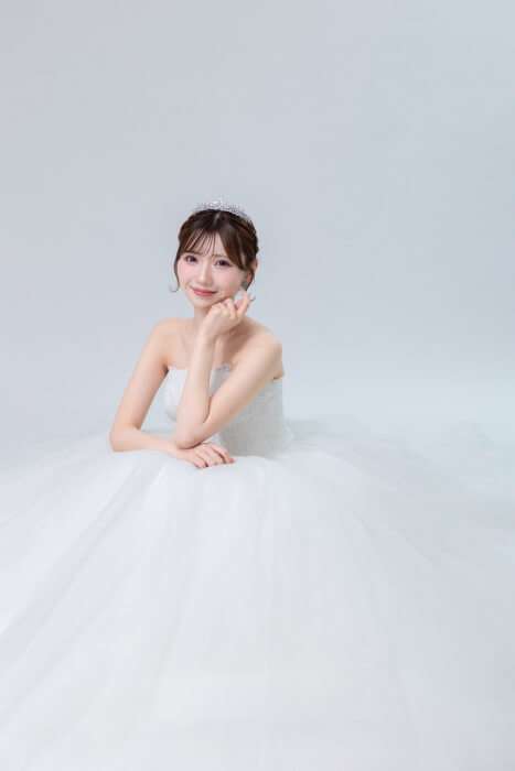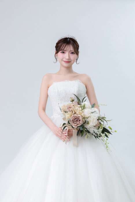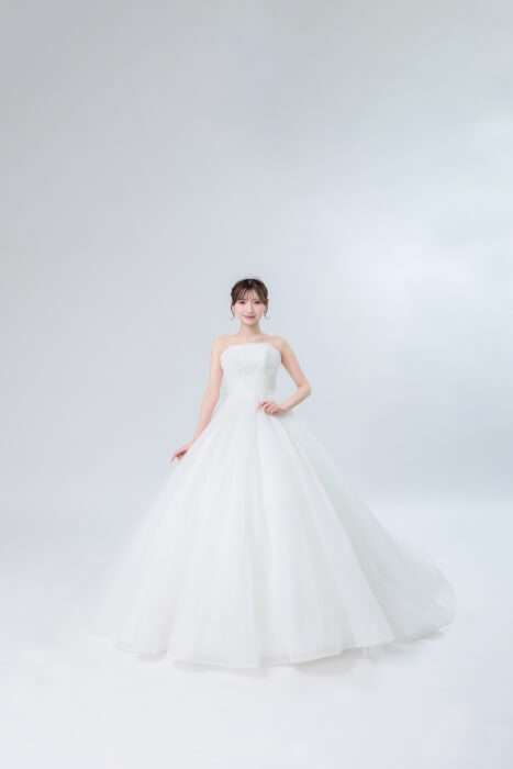 スカートがふんわりと広がるプリンセスラインのシルエットで