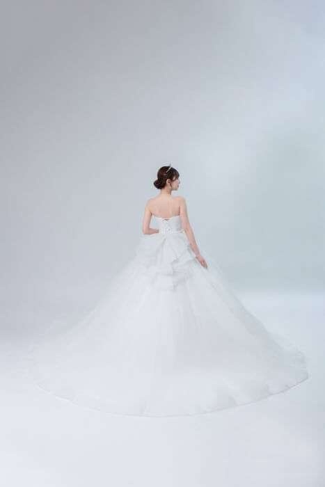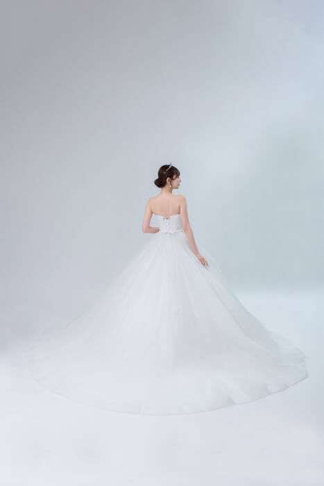 バックトレーンは長すぎず短すぎず程よい長さ感なので挙式や前撮りはもちろん2次会などでもご使用いただけます!