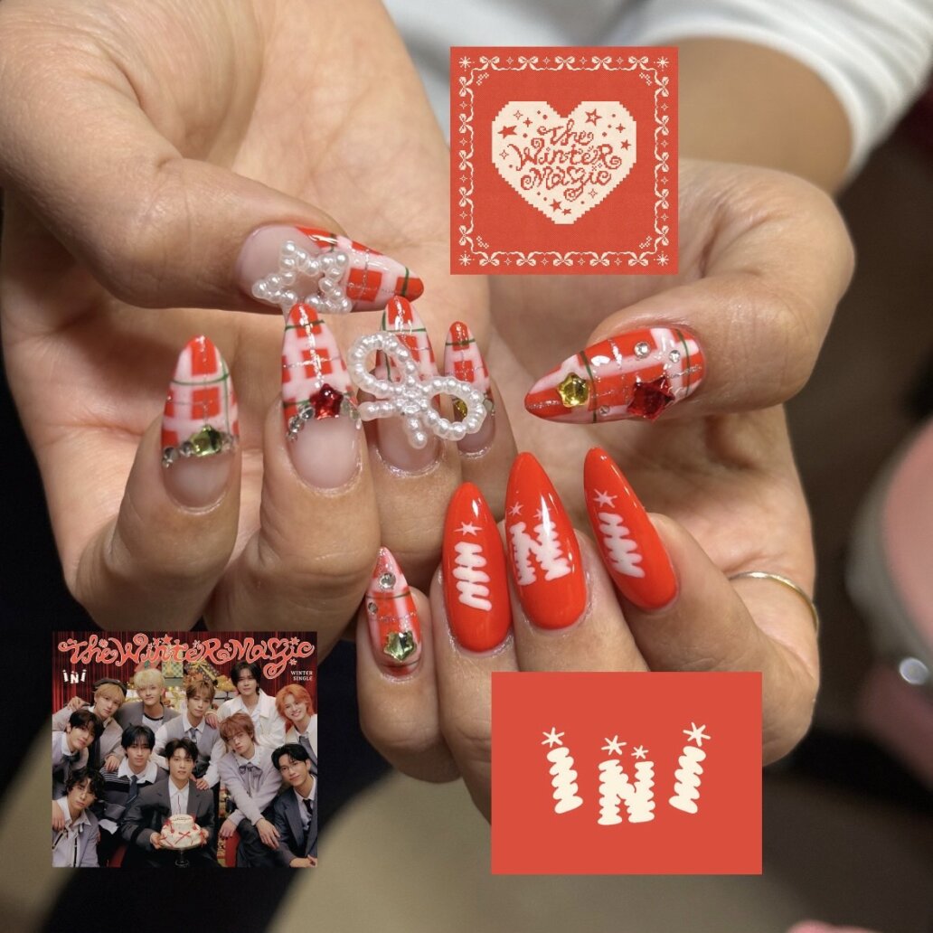 このネイルは私(栗原)のお気に入りでもあるINIの新曲をイメージしたデザインになってるそうです🎁