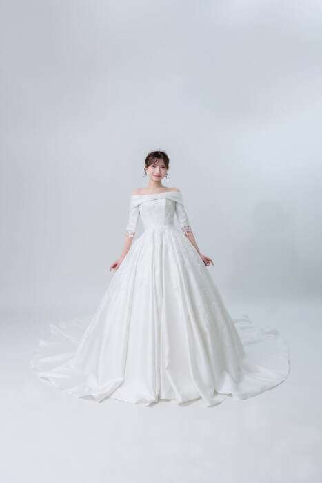 プリンセスラインのボリューミーなドレスで縦のシルエットがとても美しく見えます🌟