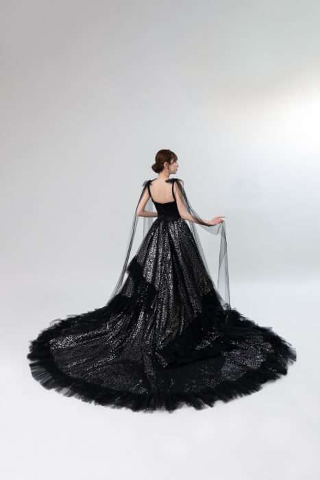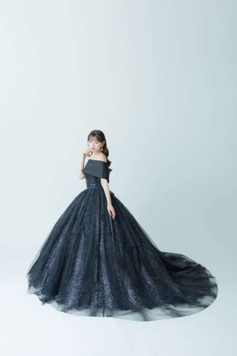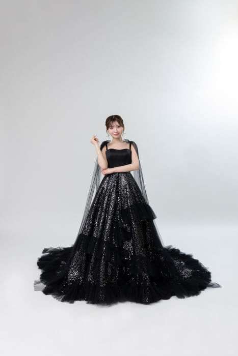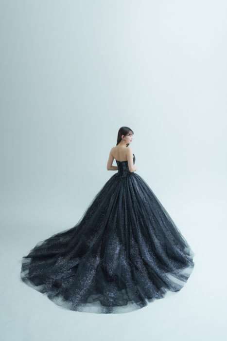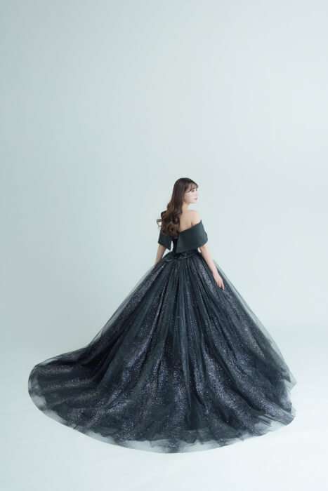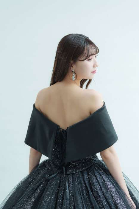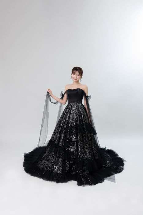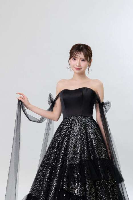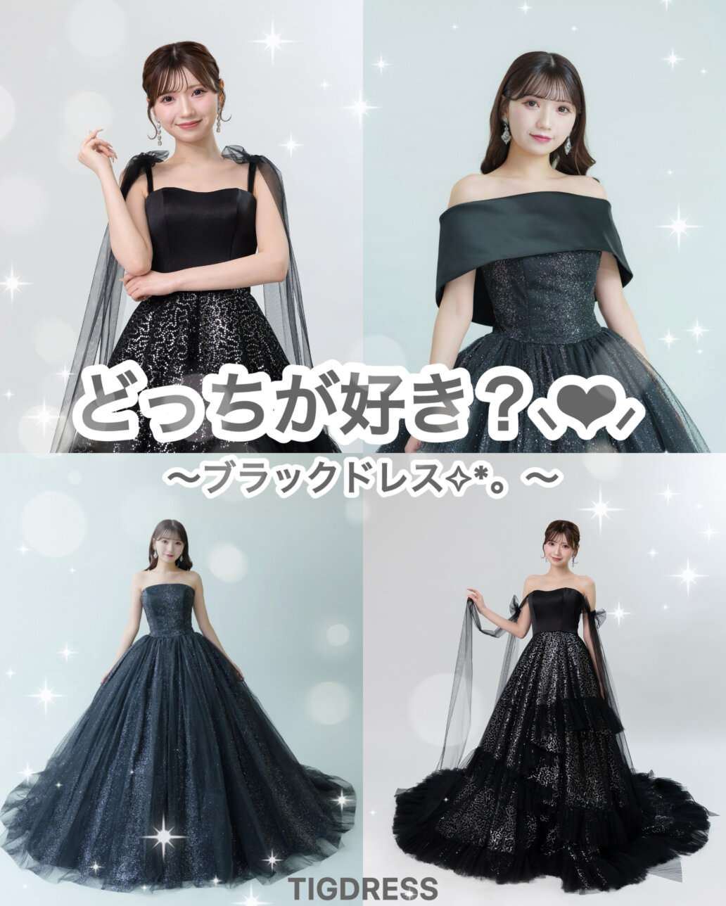 チュールリボン×ブラックドレスの大人可愛いデザインです♪