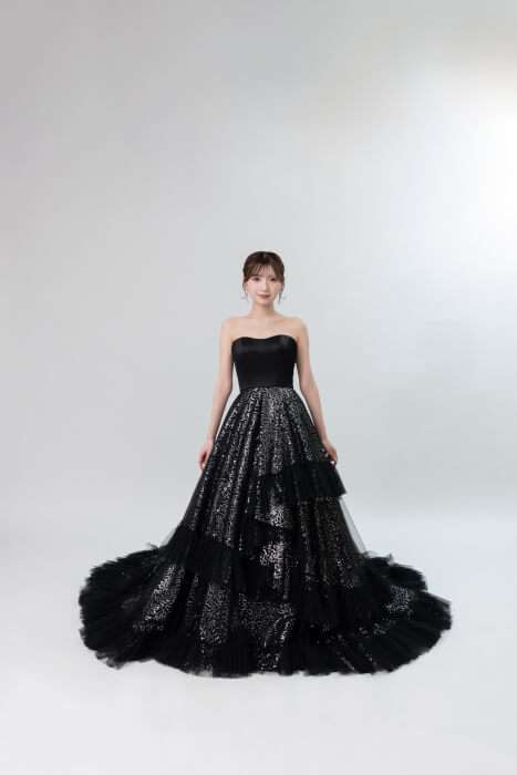 スカート部分が個性的な形で内側の生地にスパンコールが施されているのも可愛いポイント💗