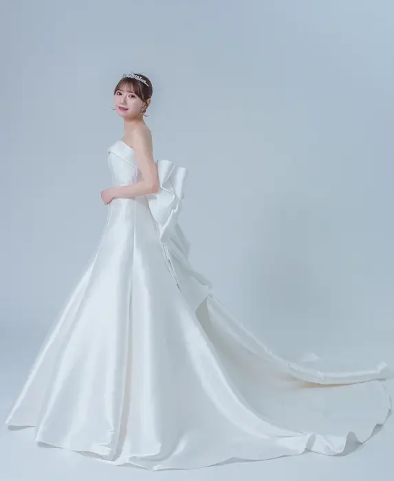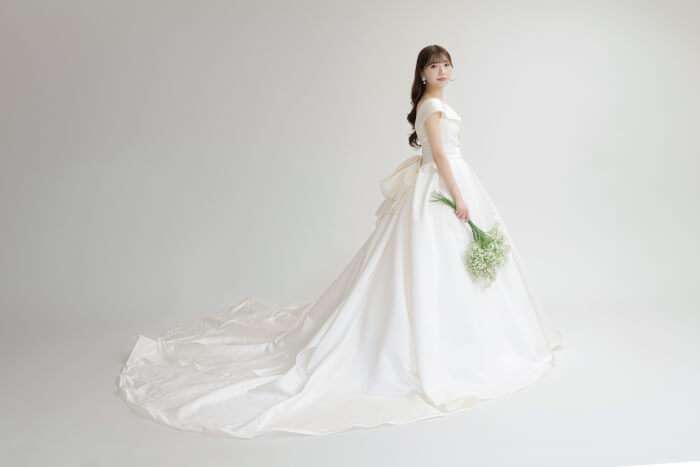 後ろのトレーンもほどよくあるのでお写真映えもばっちりなデザインです!