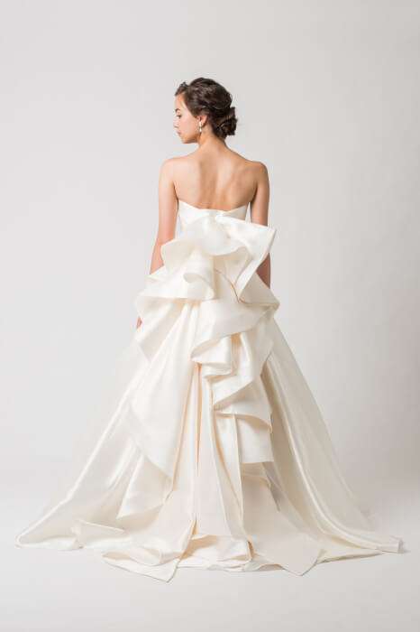 腰元にはフリルが取り外し可能で後ろ姿もロングトレーンで美しいデザインです🌟