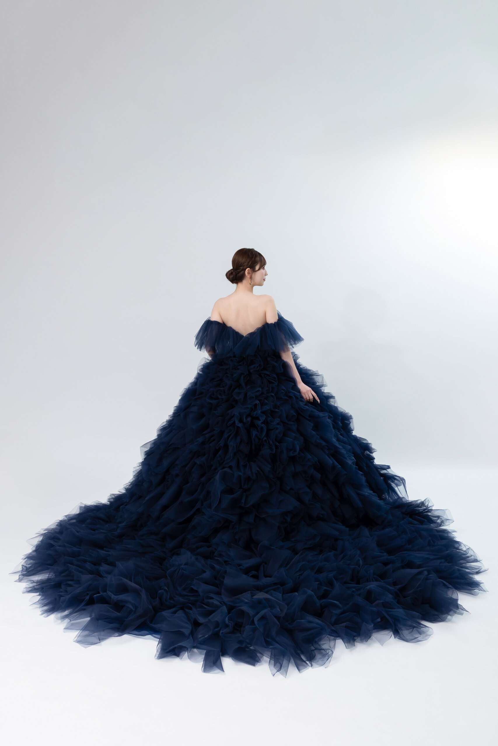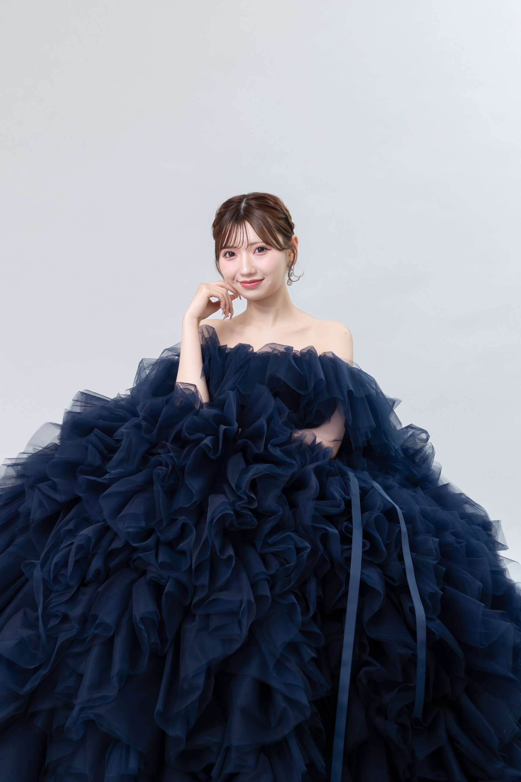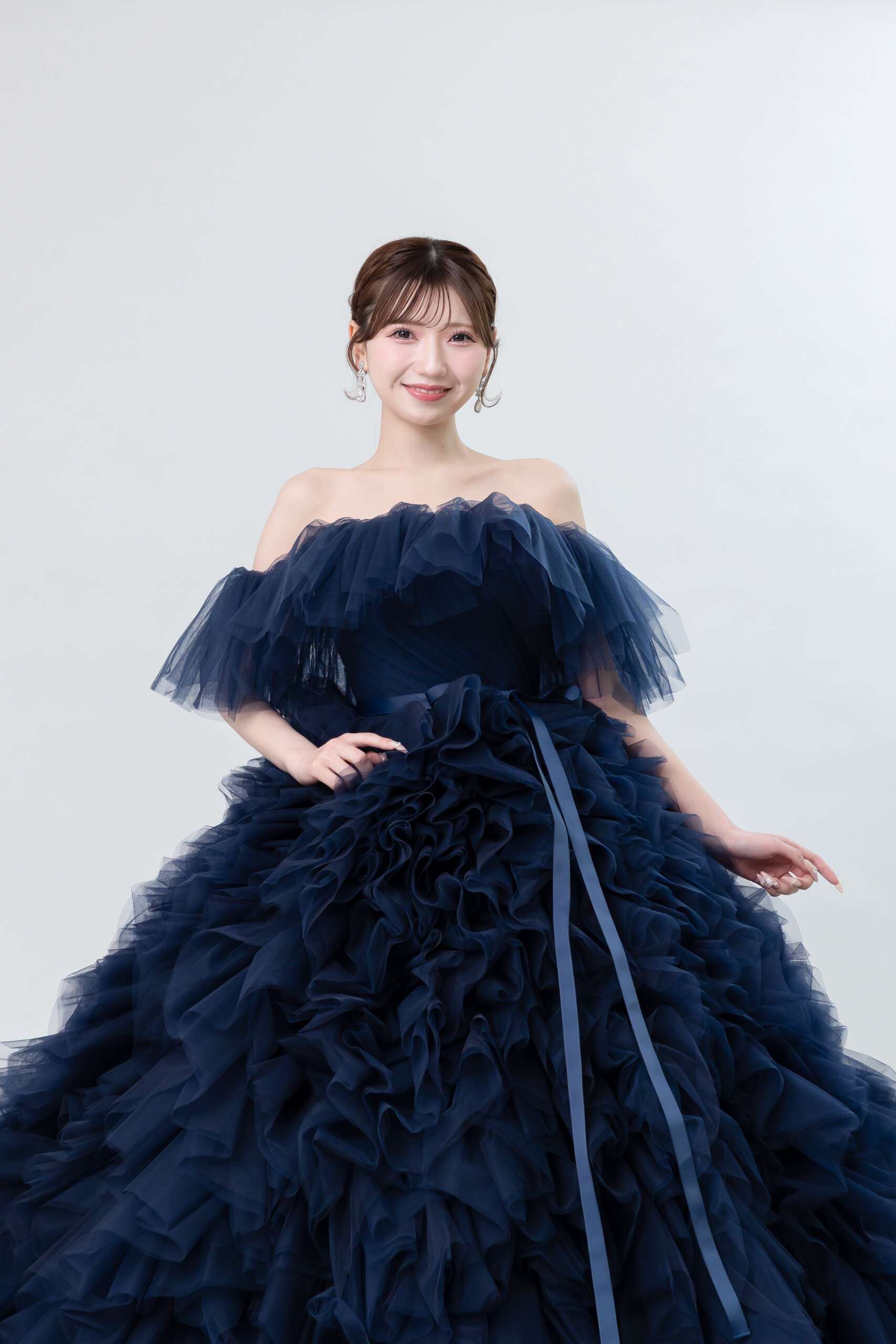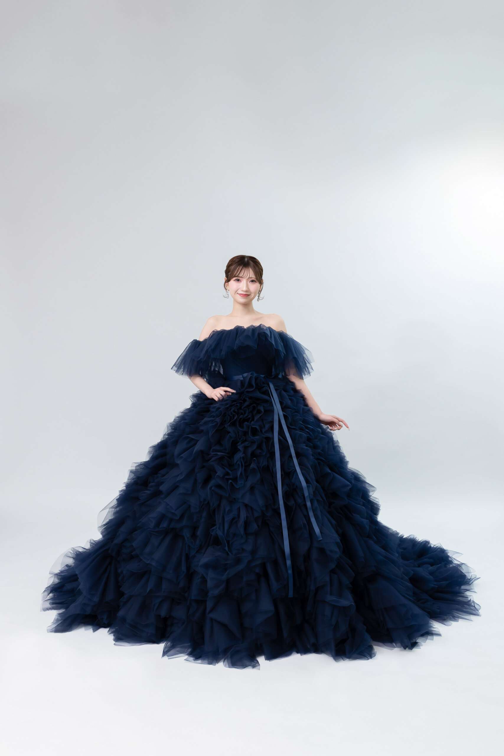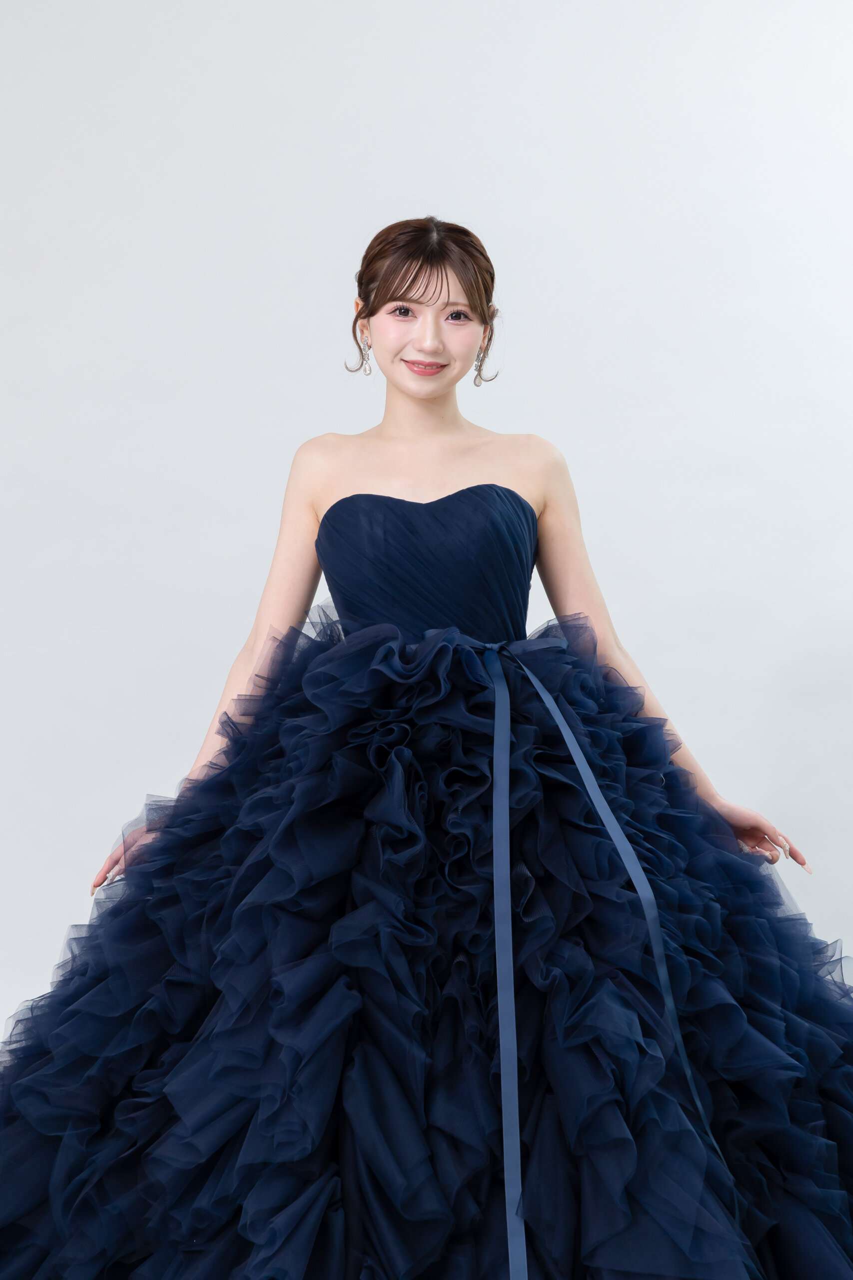 大人っぽいお上品カラーのネイビー×ふわふわデザインで大人可愛いカラードレス(^^)/