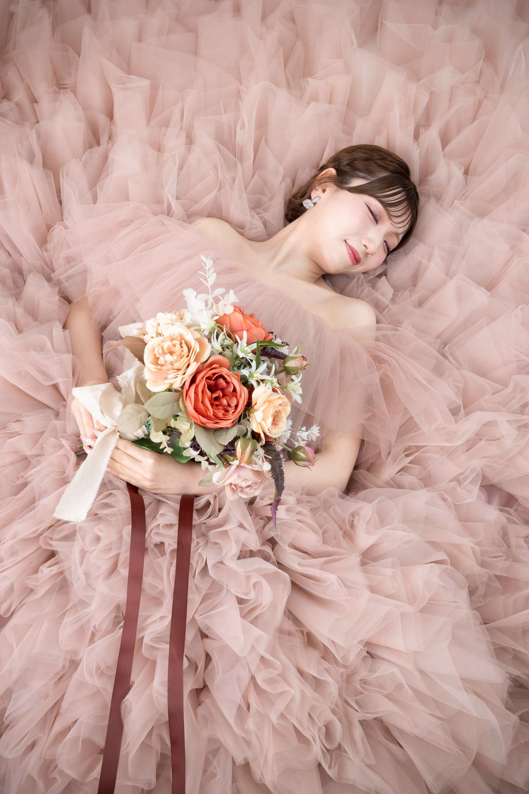ピンクカラーだと可愛すぎるけどふわふわが着たい花嫁様におすすめです🌷