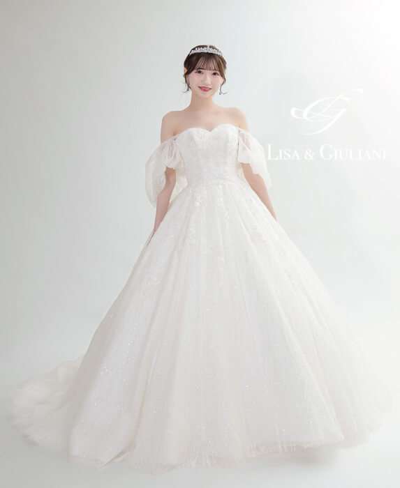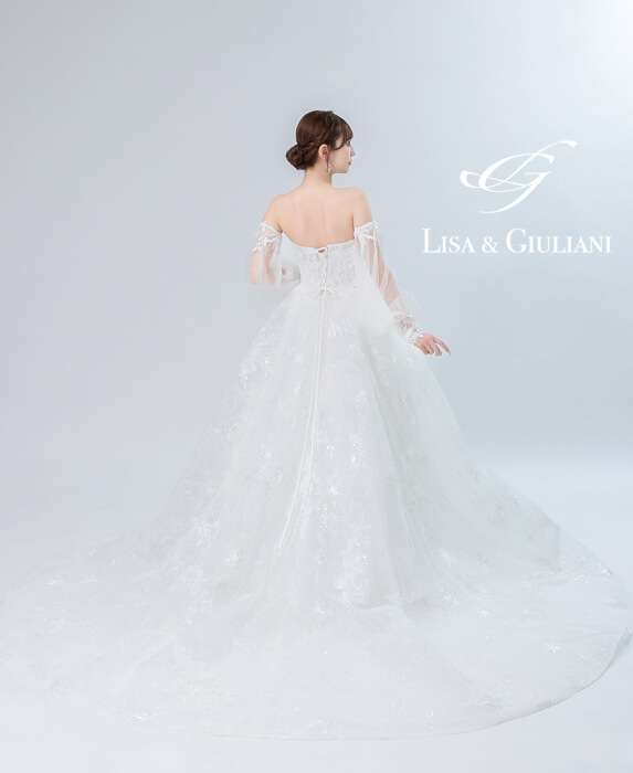 全体に細かな刺繡とグリッターがふんだんに散りばめられ360°どの角度から見ても豪華に映えること間違いなし💖