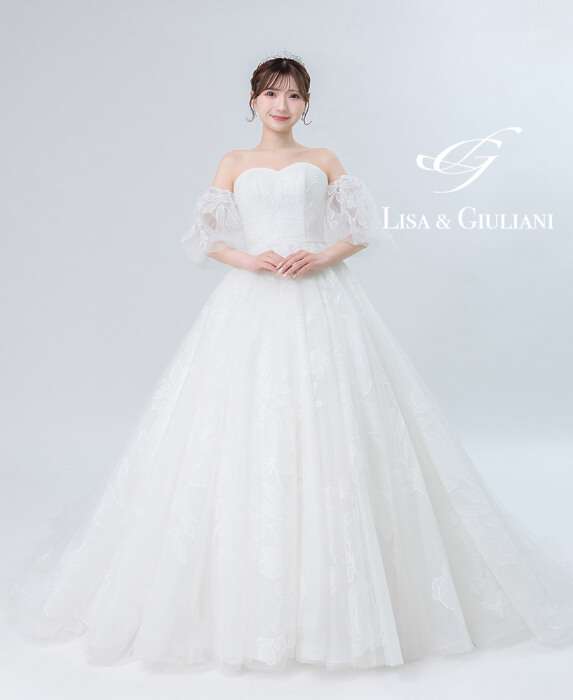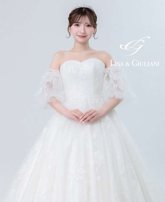 パフスリーブには花柄レースがあしらわれ上半身も華やかに魅せてくれるデザイン🌸