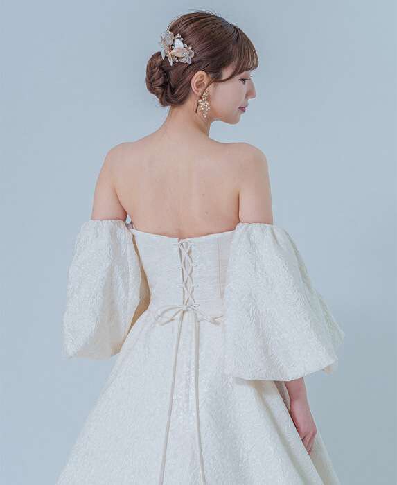 お袖は可愛らしい雰囲気になるパフスリーブと上品な雰囲気になるオフショルダーの2種類💕