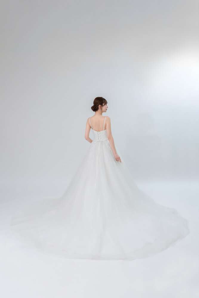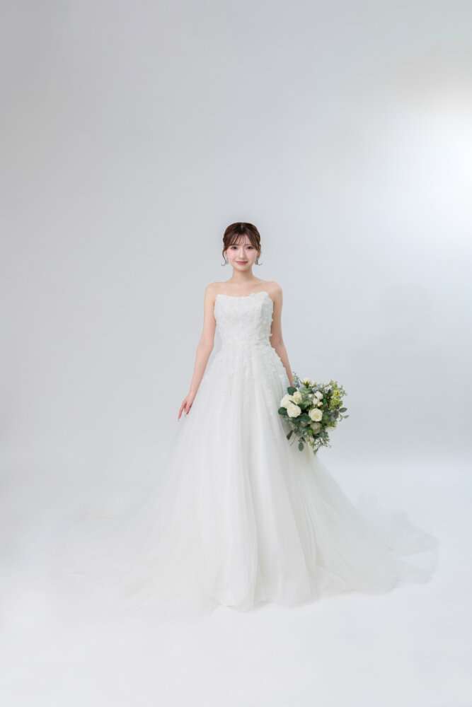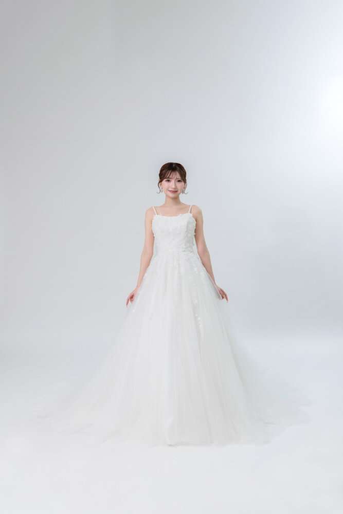 Aラインの柔らかなチュールドレスなのでウエストラインも綺麗に見えるデザインです(^^)/