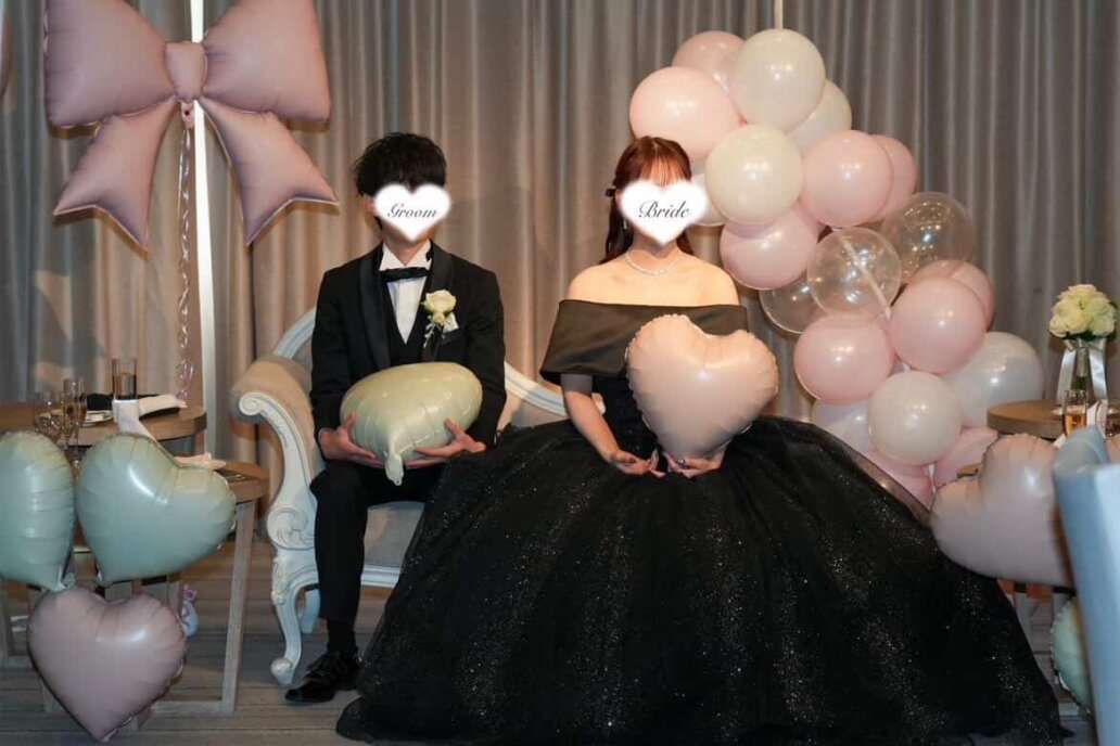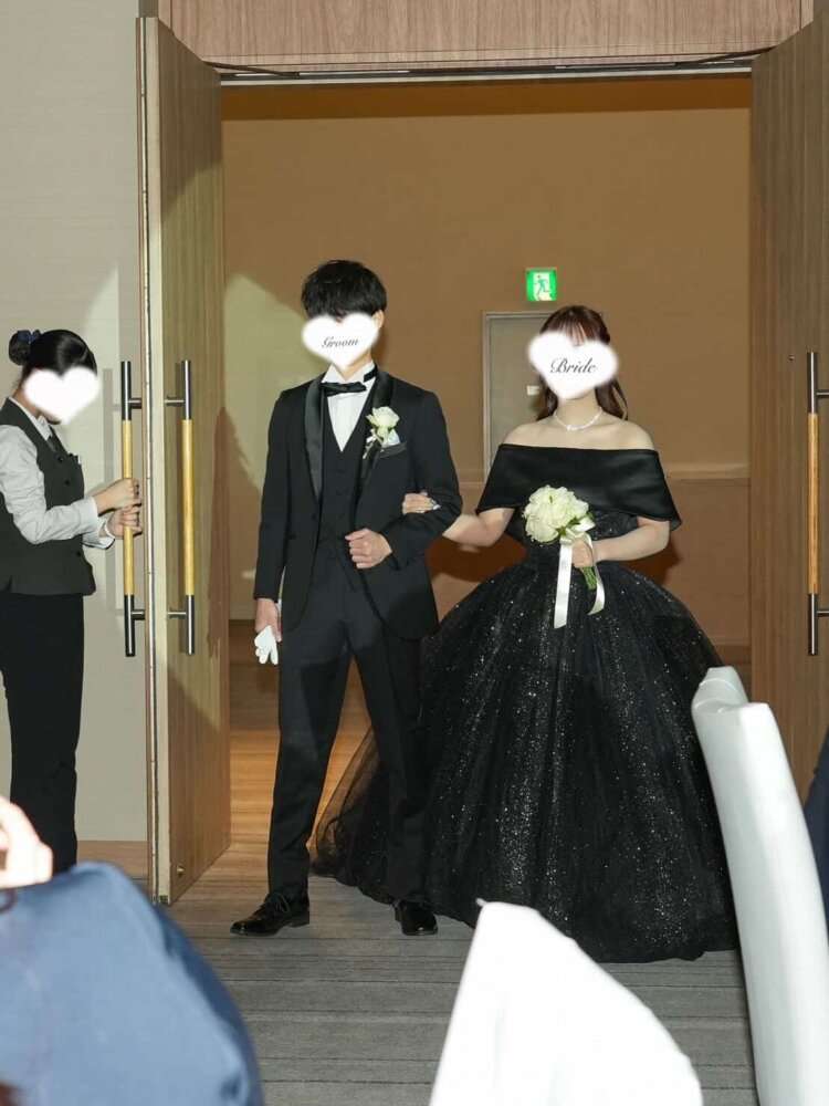 お衣装がブラックで統一されている分背景の華やかさ、お2人のお衣装のシックなカラーもお互いに際立って素敵ですね