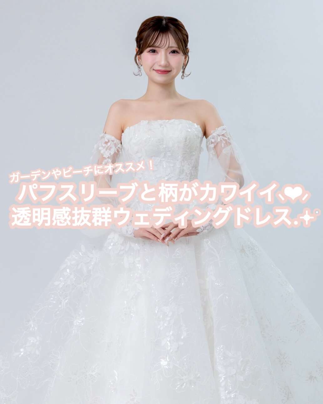 本日は透明感抜群?!ビーチやガーデンにおすすめパフスリーブドレスをご紹介します♪