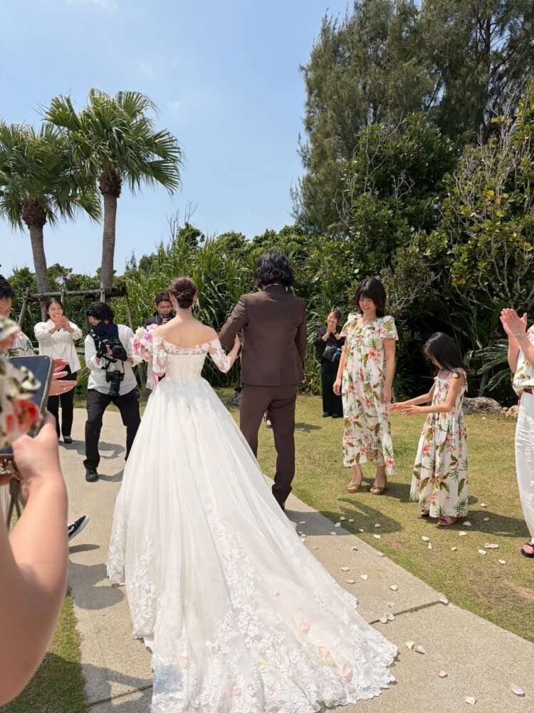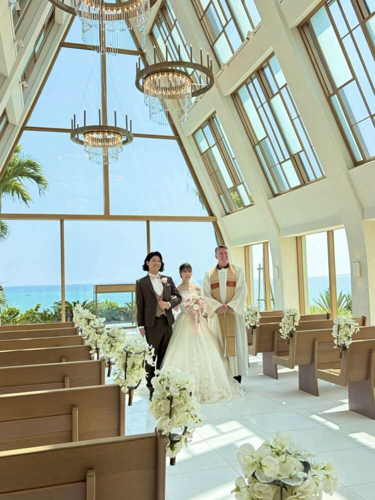 本日は📍3月に美らの教会にて挙式・披露宴をなさいましたO様より素敵な当日のお写真を頂きましたのでご紹介になります♪