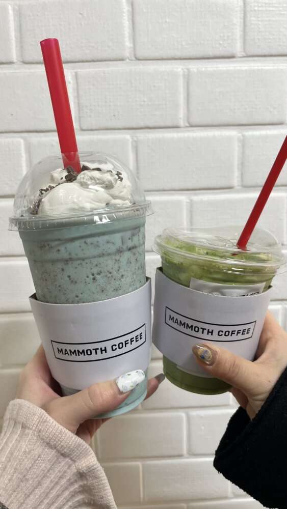 私はチョコミントフラッペ・友人はアイス抹茶ラテを頼みました🍃