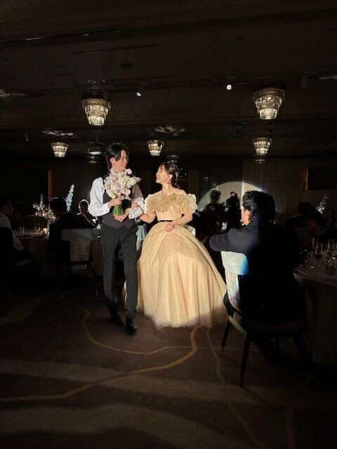 ご披露宴ではスポットを浴びているお2人が輝かしくお衣装もとても華やかに映えて素敵です!