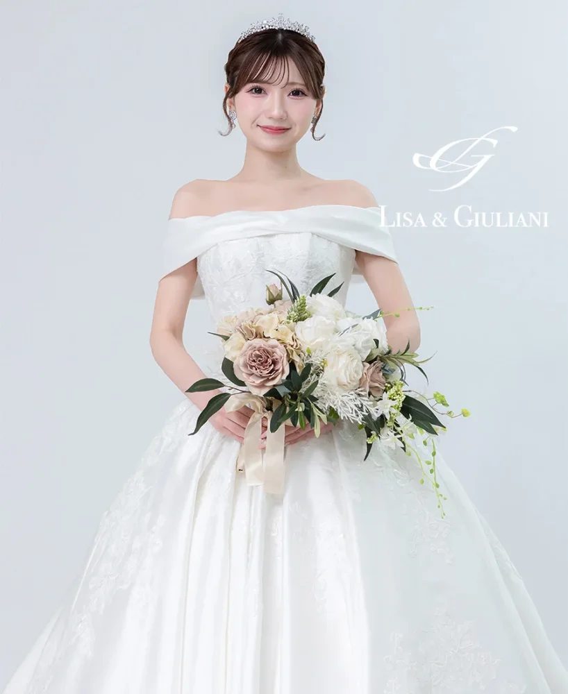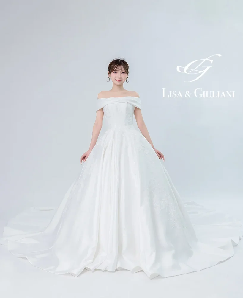 オフショルダーのデザインが上品な印象を見せてくれ、