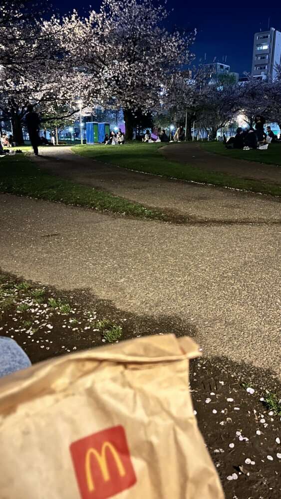 こちらは代々木公園で夜のお花見をしました!