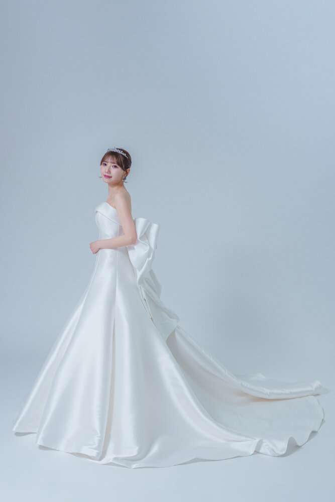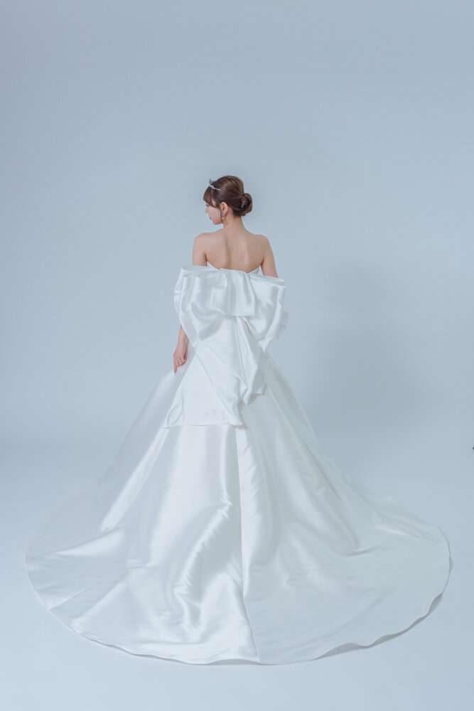 お背中に大きなリボンを取り付けられるウェディングドレス🎀